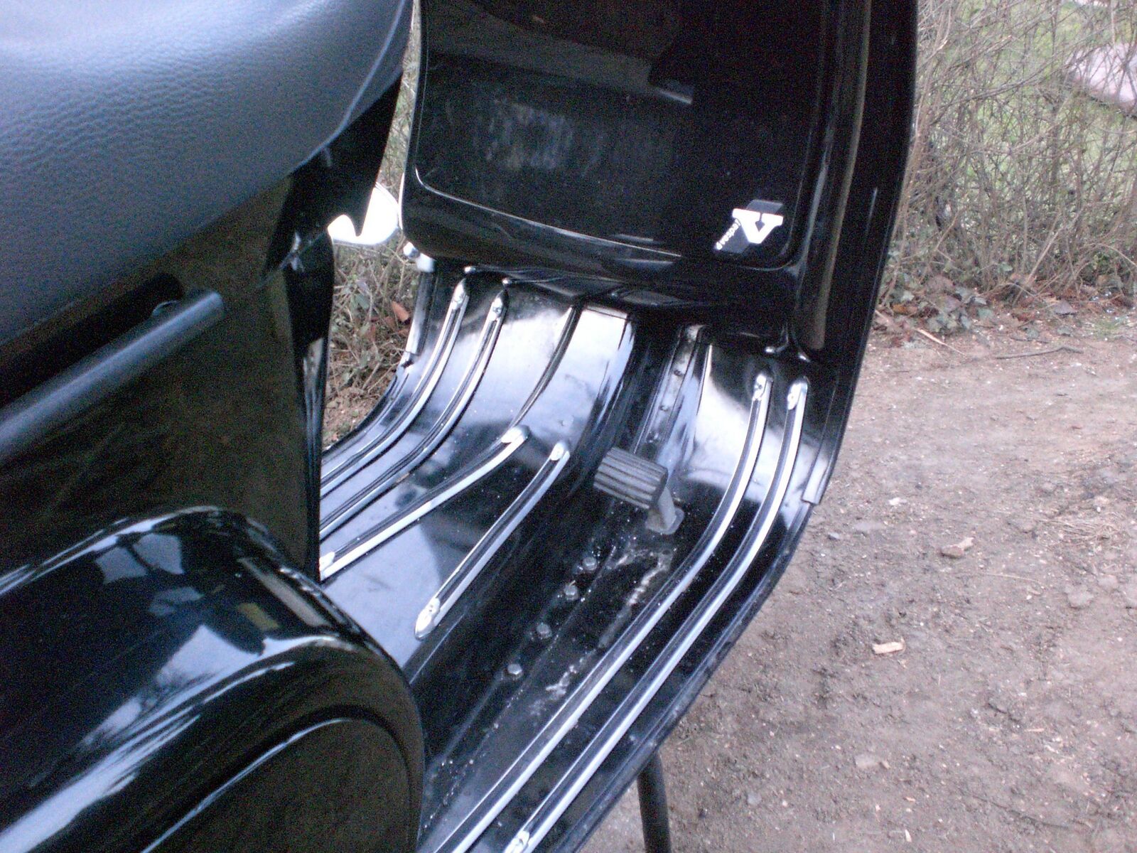Aber da die Vespa eh im Trittblech Bereich lackiert werden muss werd ich Löcher bohren und sie dann fest machen!