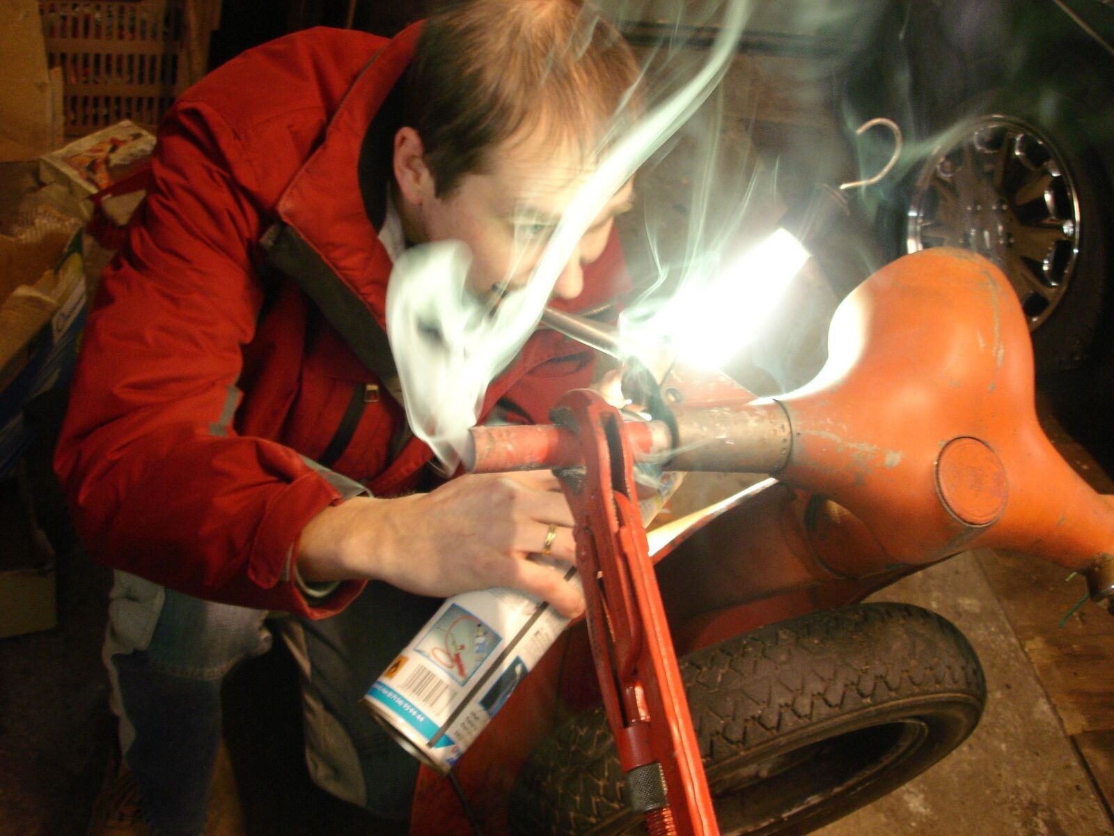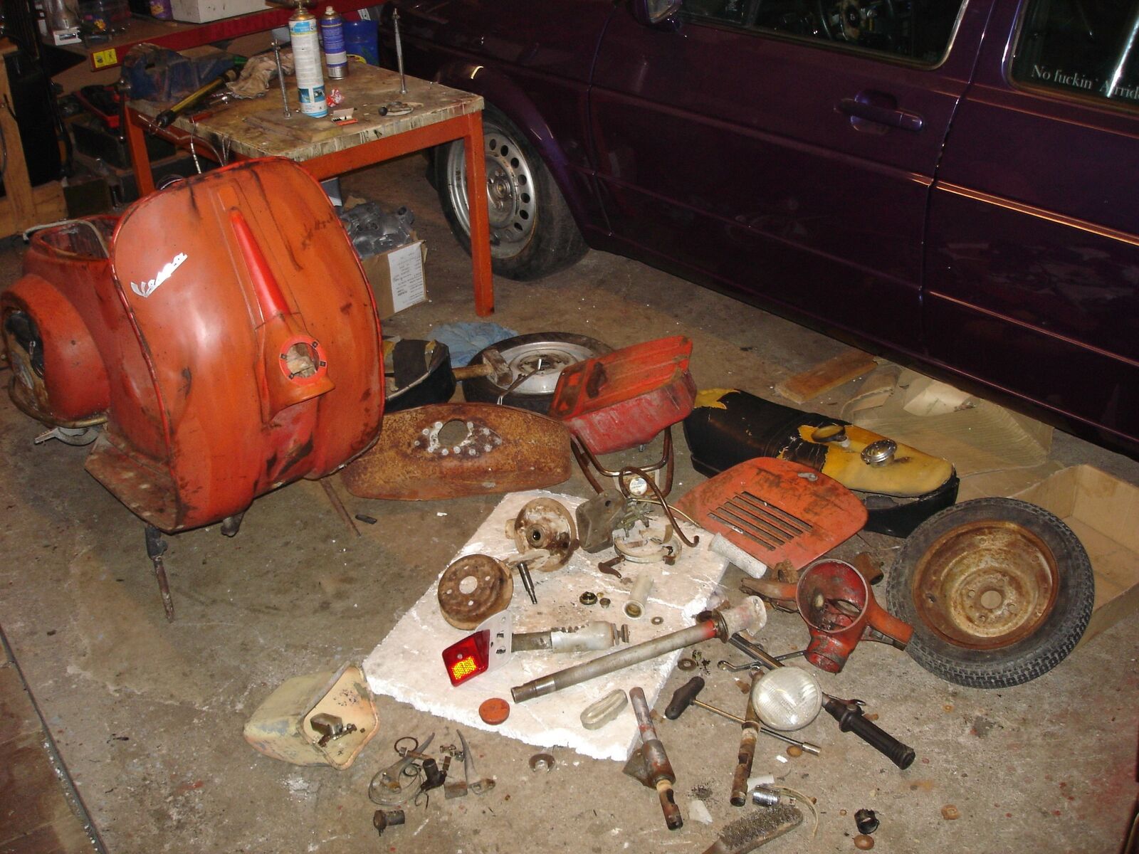 bis auf einige Teile war die Vespe zerpflügt...ehrlich es lag alles rum,,hummel hat ja scho erste bilder reingestellt!!!..und das chaos nahm seinen lauf.... :+5:+5:+6:+6