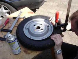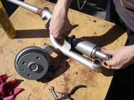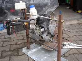 tja dann baute er einen MOTORPRÜFSTAND also ein Gestell wo er Motor rein hängen konnte um zu Testen ob das Teil läuft....