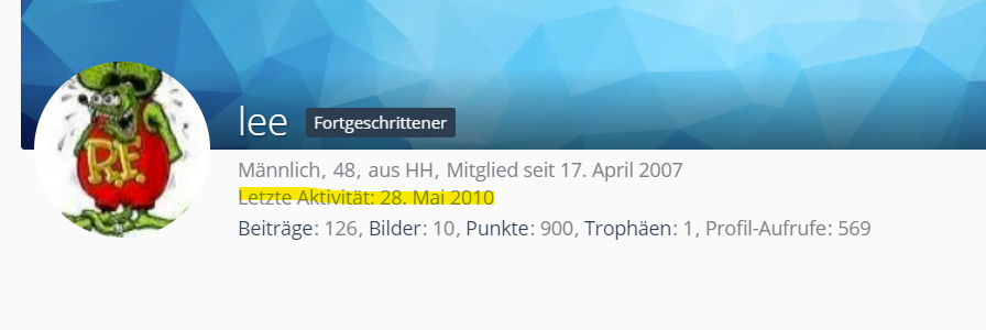 Lee war das letzte Mal im Mai 2010 hier aktiv...: