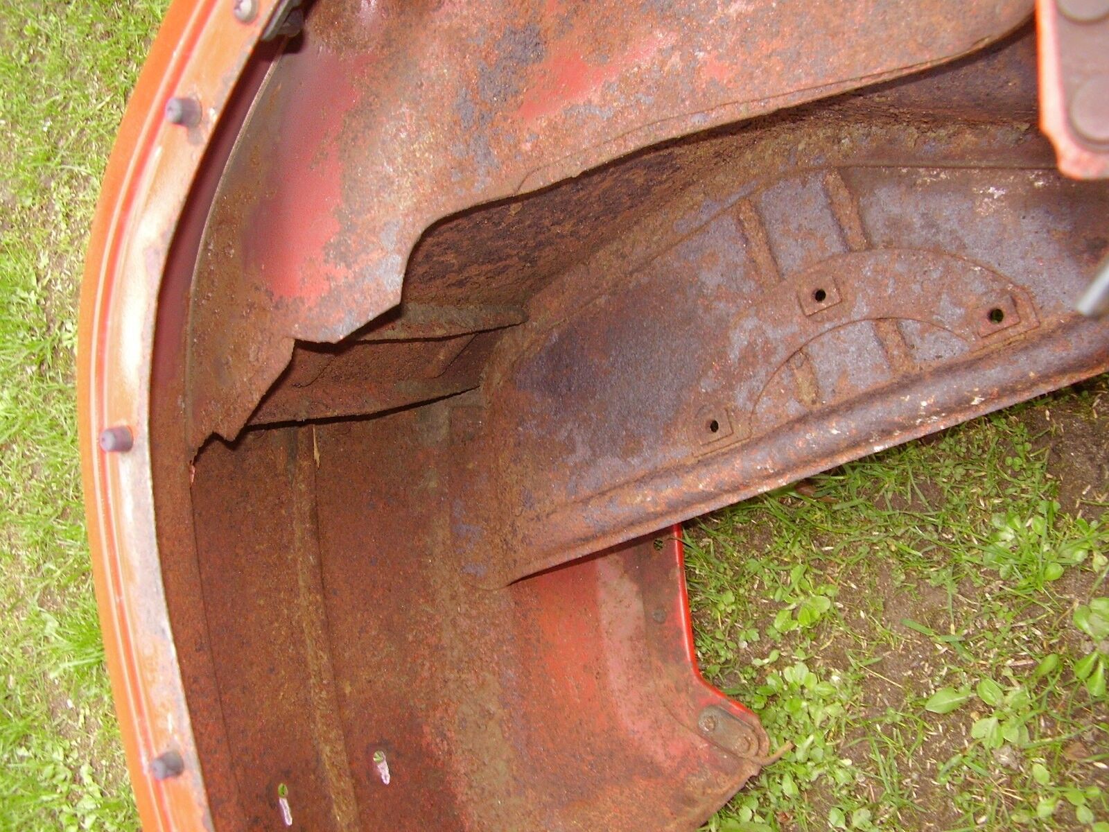 Oben soll sie ja zunächst den O-Lack behalten, jeoch von unten musste was passieren. Hab' mit der Flex und Bohrmaschine den Rost so gut es ging beseitig und heute den Rostumwandler aufgetragen. Der Umwandler muss nun 24 Std. einwirken, dann kann ich grundieren.
