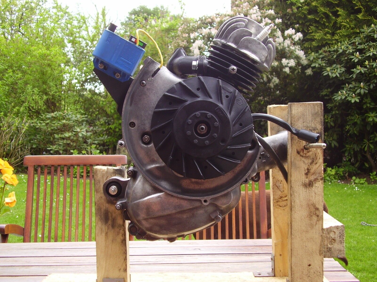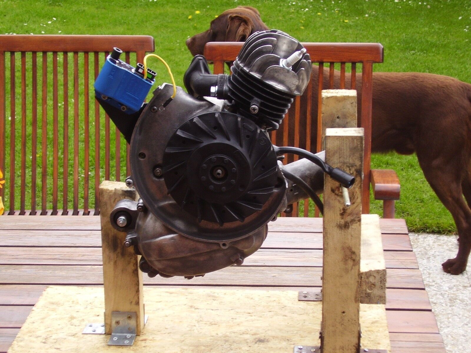 Hab' den Motor nun seit heute wieder kompl. zusammen. Wegen des fehlenden Funkens, habe ich die Zündgrundplatte überarbeitet, weiterhin ist Zünd - spule, kabel, -kerzenstecker, -kerze neu ... und was soll ich sagen, sie hat nun wieder 'nen Zündfunken.!!! 8)