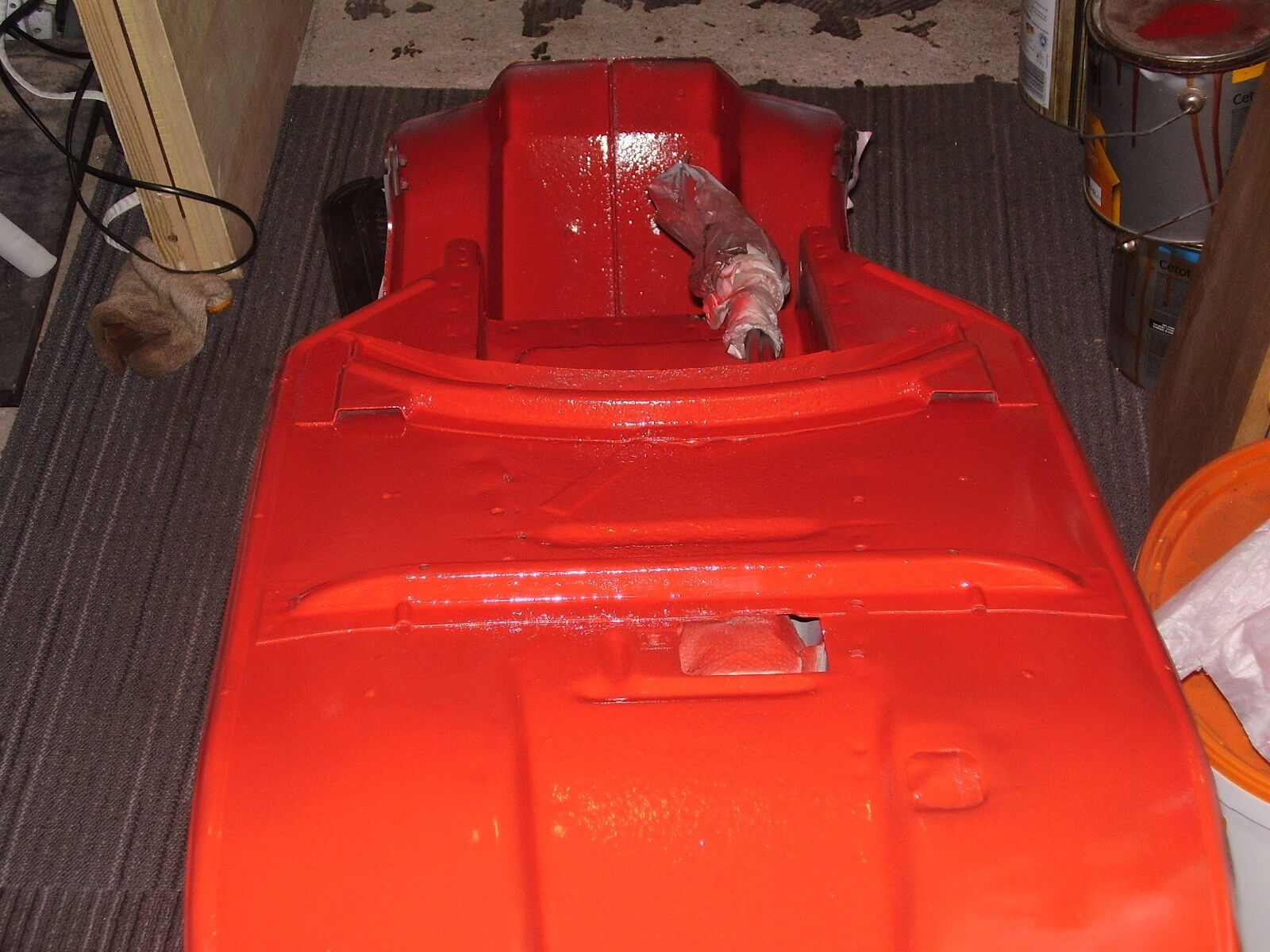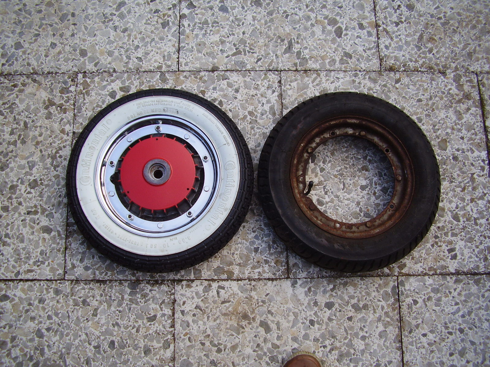 Die Felgen und Reifen sind nun auch angekommen, Bremstrommeln sind nun rot. ( pkracer: wg. der Felgen u. Reifen -> es wird keine Verkaufrestauration und Sie bekommt auch keine braune Sitzbank :D )