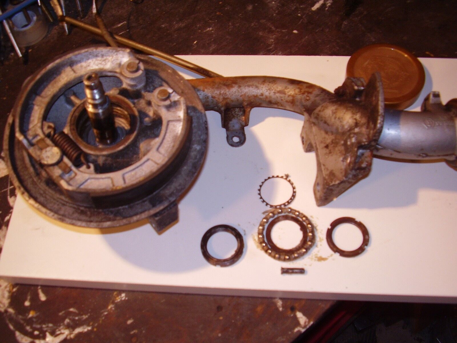 Die Lenkstange wird neu lackiert, Lager usw. kommen neu (Beim Zerlegen ist das Lager vom Lenkkopf zerbröselt :-4 )
