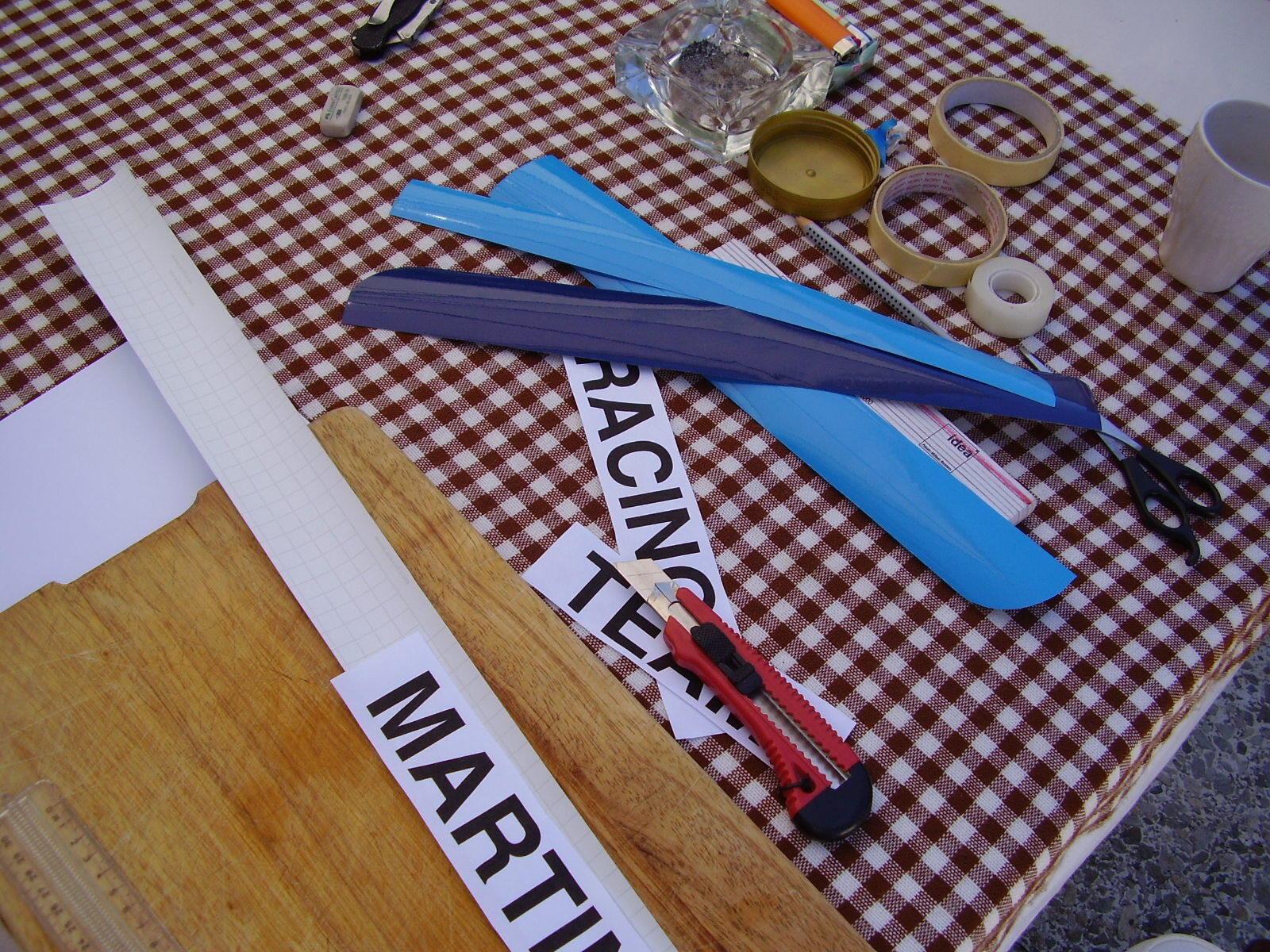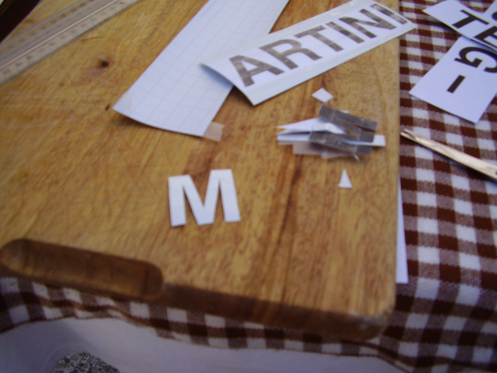 Habe heute mal für das Beinschild gebastelt. Also am Rechner Ausgedruck, auf Folie aufgeklebt, mit Cuter und Schere ausgeschnitten und dann auf's Beinschild - geht sehr viel Zeit für drauf....