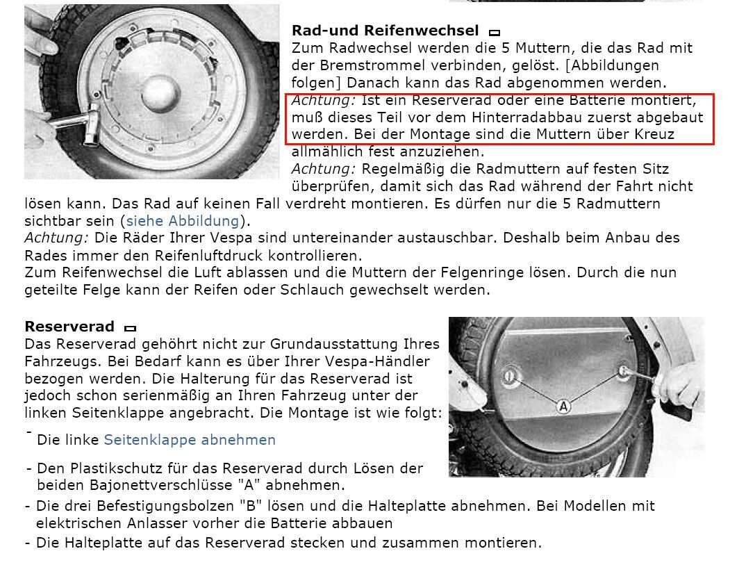 Bock den Roller auf (bierkiste o.Ä.), mach das Ersatzrad raus und lös die Schrauben vom Rad! Merh musst du im Normallfall nicht abbauen, außer du hast ne andere Auspuffanlage dran. Die muss dann evtl weichen. Kein großer Akt
