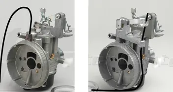 Zum Vergleich doch mal ein Foto: Links der neue Vergaser, rechts mein bisheriger. Ich habe den Zug dort eingemalt...