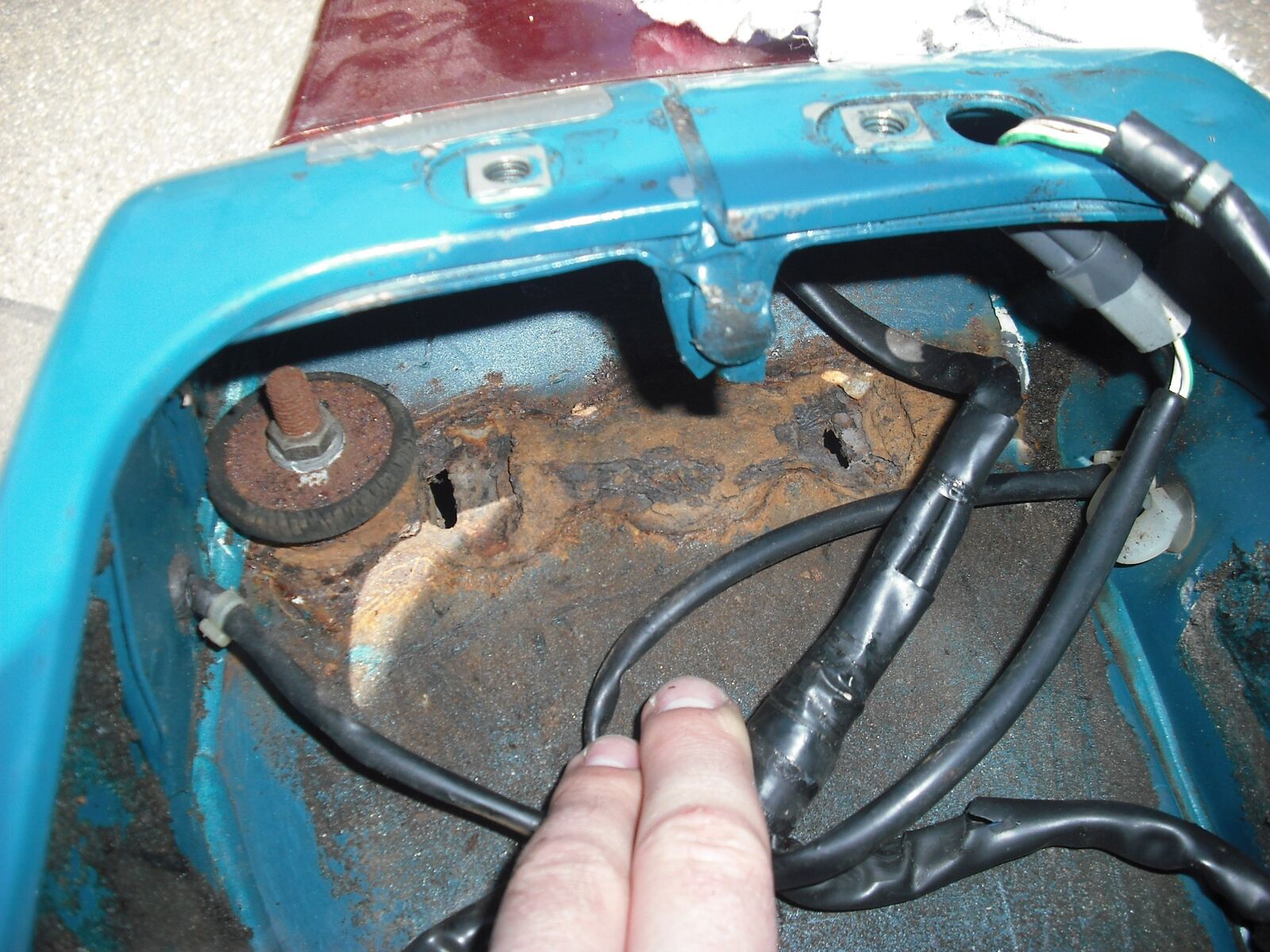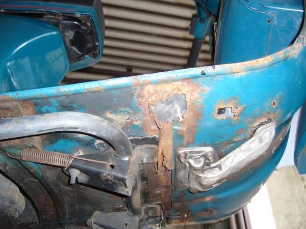 bei mir war es glücklicherweise noch nicht so weit fortgeschritten. ich würde hier einfach mal n dremel mit mini flex scheibe hernehmen und soweit raustrennen bis du wieder starkes material hast! dann mal vernünftiges stahlblech (1.5>t>=1) bitte hier nicht anfangen und aufgrund leichter biegbargkeit ne rückwand von nem kühlschrank nehmen odersonstwas! geht 100% schief!
