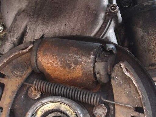 1. die Bremse sieht auch ohne Schaden nicht so toll aus, sie hat doch einiges an Rost und daher drängt sich der Verdacht auf dass der Radbremszylinder nicht mehr in Ordnung war