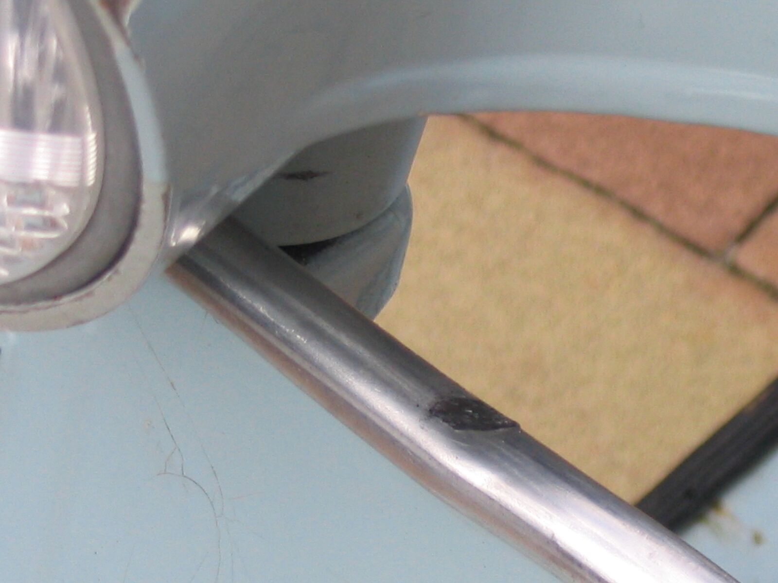 Was mich irritiert ist das der Lenker die Beinschildumrandung eingedellt hat und diese bei vollem Lenkeinschlag auch berührt.