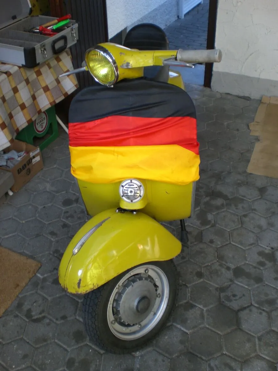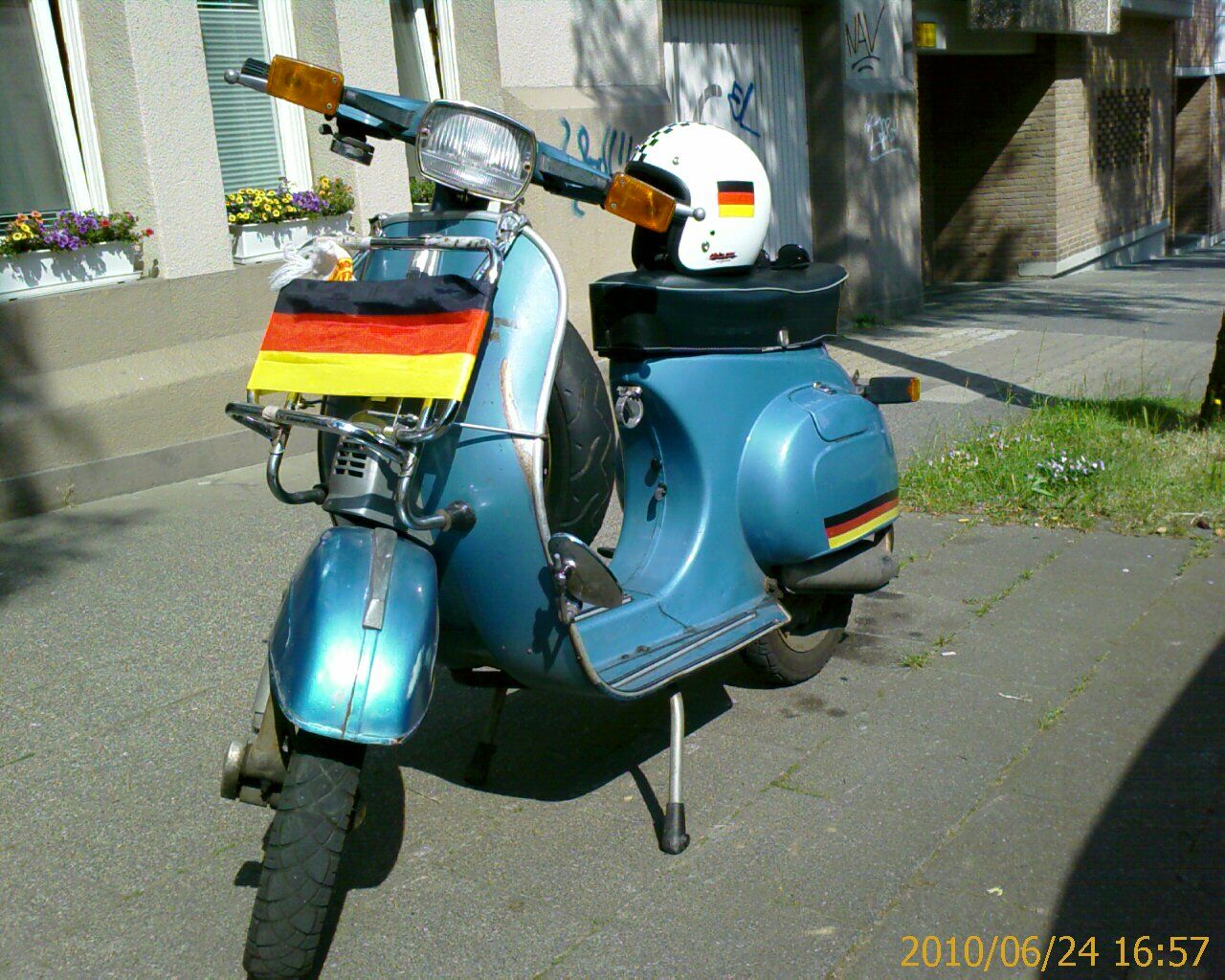 ich bin am mi abend mit der vespa heimgefahren. seh normalerweise nie vespafahrer, ausgerechnet da kam mir ein portugiese mit seiner v50 entgegen.