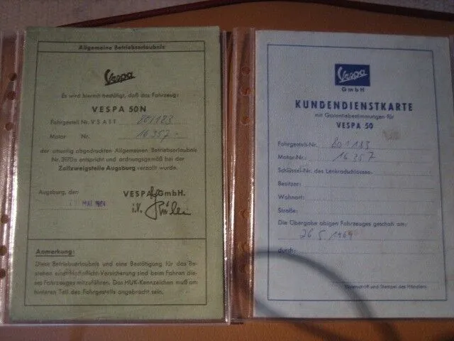 Habe die Vespa komplett überholt, Motor neu gelagert, neue Simmeringe, Zündung neu gemacht und neuen Kolben eingebaut, weil kein orig drin war, aber auch ein 50ccm. Mußte die Felgen und den Tank leider neu lackeiren, weil sie in einem SEHR schlechten Zustand waren. Die orig. Papiere und sogar ein Kundendienstheft sind auch vorhanden.