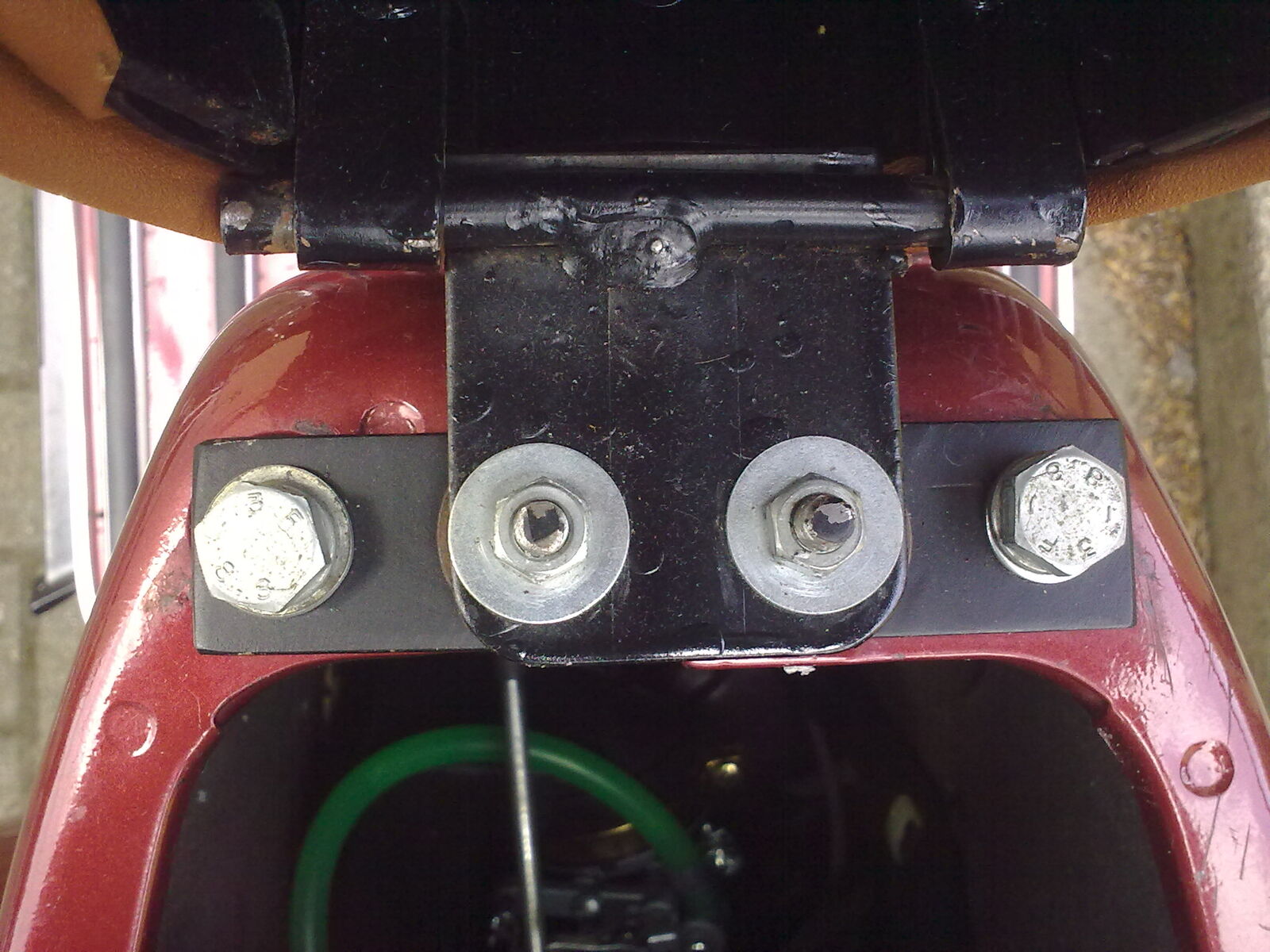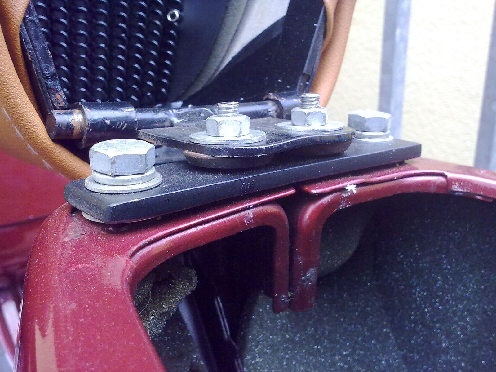 Wenn du die V50 Sitzbank hast, besorgst du dir zusätzlich noch ein Stück Blech mit ca. 3 mm Stärke und schneidest es passend zu. Die Abmessungen und zu bohrenden Löcher ergeben sich anhand der Sitzbank und des Rahmens der PK. Ein wenig Eigeninitiative müsstest du also schon mitbringen, wenn du nicht das käufliche Set verwenden möchtest.