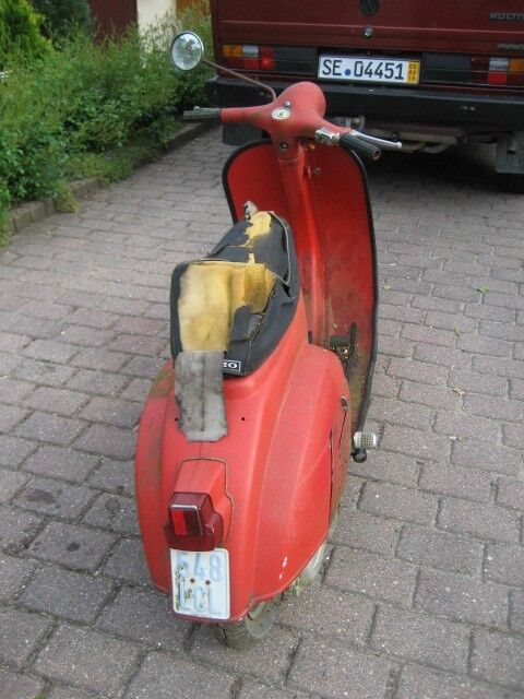 Ich bin gestern wie die Jungfrau zum Kinde gekommen und mir ist eine Vespa übern weg gelaufen. Gleich nen U-Turn hingelegt mit dem Auto und angeguckt, zufällig kam der Besitzer grade vorbei und 20 minuten später wars meine! Stand jetzt insgesamt 3 Jahre in eine Hecke gelehnt und 8 Jahre draussen.