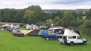 Selbst die geländewagen mußten bergauf allrad einlegen um hoch zu kommen auf der feuchten wiese.