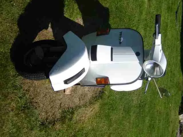 - Der Roller wurde mit der Sprühdose nachlackiert die alte weiße Farbe wurde angeschliffen und weiß überlackiert ohne Klarlack, sehr wenig Flugrost.