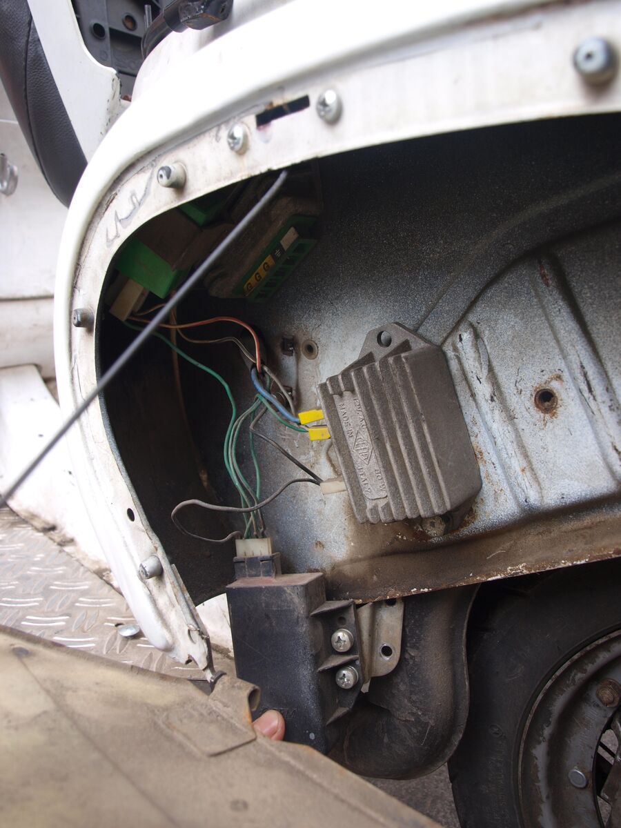 Aber im ernst, den linken Seitendeckel runter. Wenn es dahinter so aussieht wie auf dem Bild, hast Du schon mal ein Reserverad. Wenn Du dann die mit "A" bezeichneten Schrauben öffnest, hast Du den Anblick wie auf dem zweiten Bild. An der Stelle wo das "B" steht ist dann die Batterie wenn eine vorhanden ist. Wenn da eine ist, ist die warscheinlich, mangels Pflege gehimmelt. Denn eine Vespa ist ein Kraftfahrzeug was einer gewissen Pflege bedarf. Wenn die nicht immer zu den vorgeschriebenen Inspektionen in die Werkstatt kommt, musst Du dich dann schon selber kümmern. So sollte da keine Batterie sein, ist unter der Klappe das Teil (2. Bild) mit Namen "Hupengleichrichter", der sorgt auch schon mal für diesen Fehler. An dem mal den Stecker abziehen und den Motor starten. Ist dann alles wieder OK (bis auf die Hupe) hast Du den schuldigen gefunden. Teil neu kaufen einbauen, anstöpseln und gut ist. Hast Du keine Bedienungsanleitung ?????