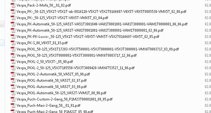 Hallo bin auf der suche nach allen Reparatur Unterlagen und alles was mit der angegebenen Vespa Indent.Nr. VA51T3001231, Antrieb E:Typ VA51M E:2KWbei 5600U/min-1 zu tun hat .