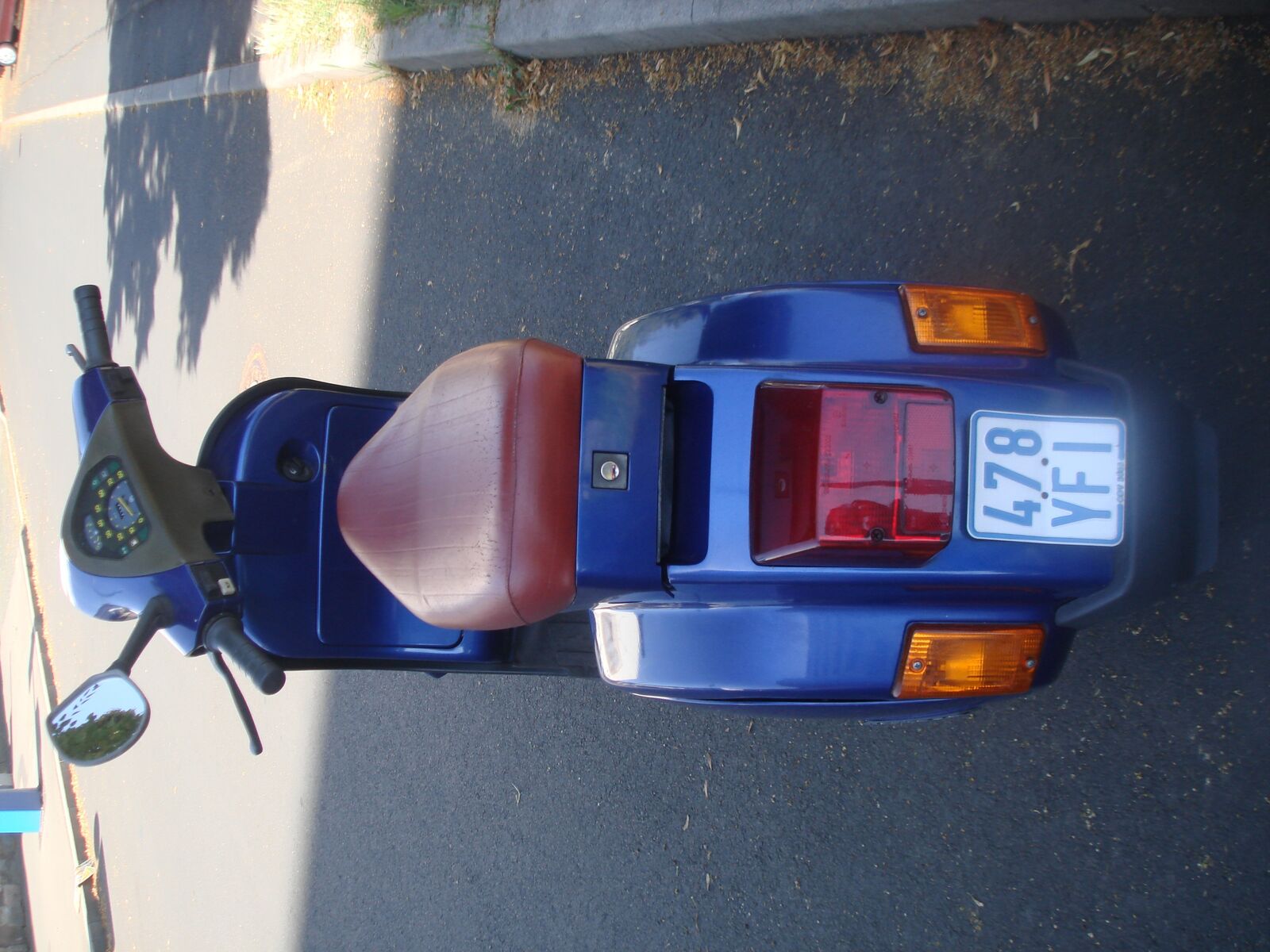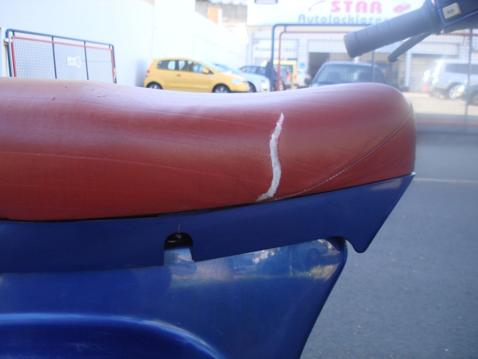 Es gibt keinen Fahrzeugschein mehr, dafür habe ich aber den original Kaufvertrag. Damals kostete das gute Stück 3.650,- DM. Es gab nur eine einzige Reparatur bisher (am Wellendichtring). Ansonsten gibt es einige Gebrauchsspuren und Kratzer (siehe Fotos). Der Roller stand ca. 6 Jahre ungenutzt in der Garage. Zuletzt war er 2006 für eine Saison angemeldet und steht seit dem wieder in der Garage. Momentan bekomme ich ihn nicht an (Kickstark, Choke), wahrscheinlich müßte er nur mal gereinigt werden und braucht eine neue Zündkerze. Nach seinem letzten Garagenaufenthalt ist er ohne Probleme angegangen...