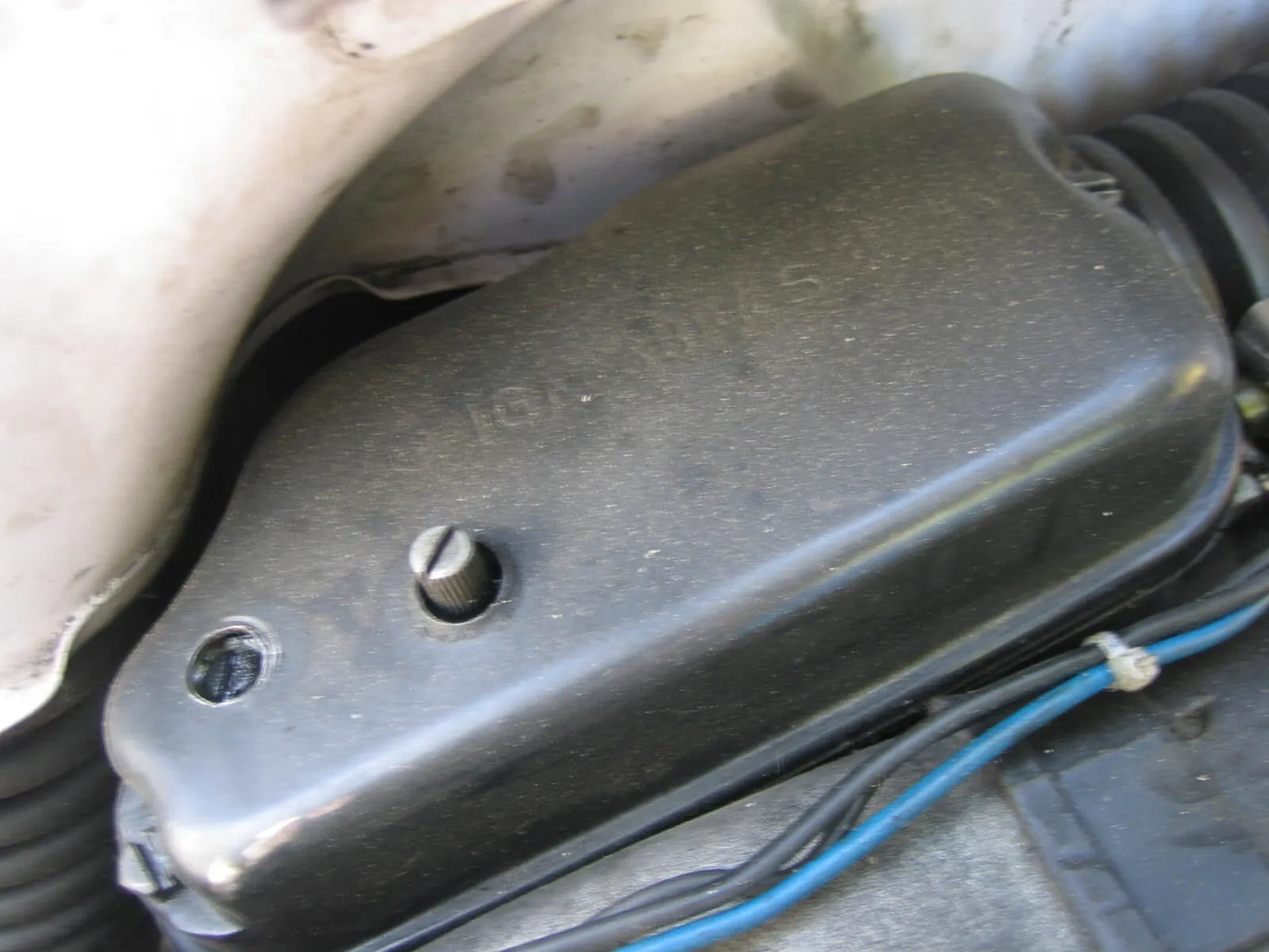Oder die, die oben hinter der Standgas-/Schieber-Regulierungs-Schraube aus dem Vergaserdeckel guckt? - und mir auch die Gummikappe verlorengegangen ist... ZWEITES FOTO