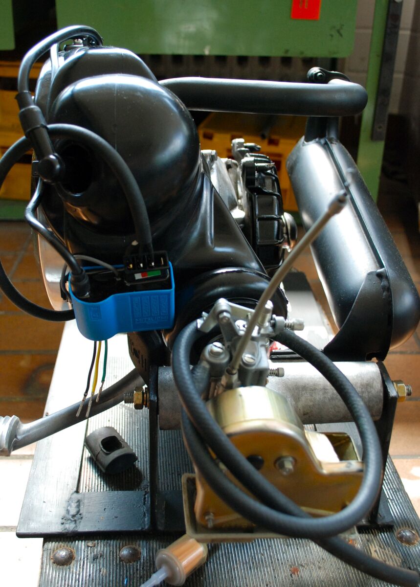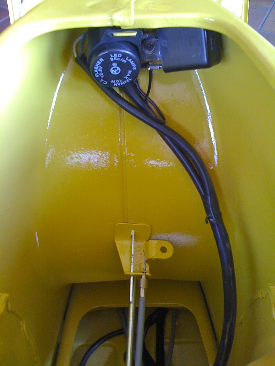 Problem: Die Elektrik stimmt noch nicht. Die Blinker. Lauchten permanent, wenn man sie einschaltet, und werden je im Takt etwas heller. Die Hupe gibt auch schräge Geräusche von sich...kein gleichbleibender Ton sondern ein Variieren mit jeweiliger Gaszugabe.