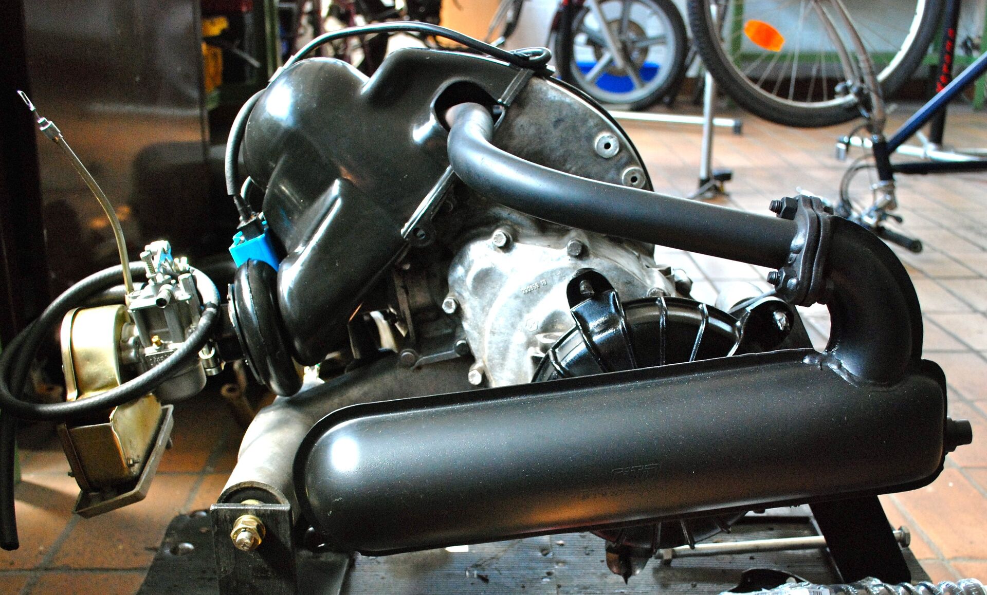 Ansonsten habe ich heute den Verrgaser eingebaut und die Gabel vernünftig befestigt.