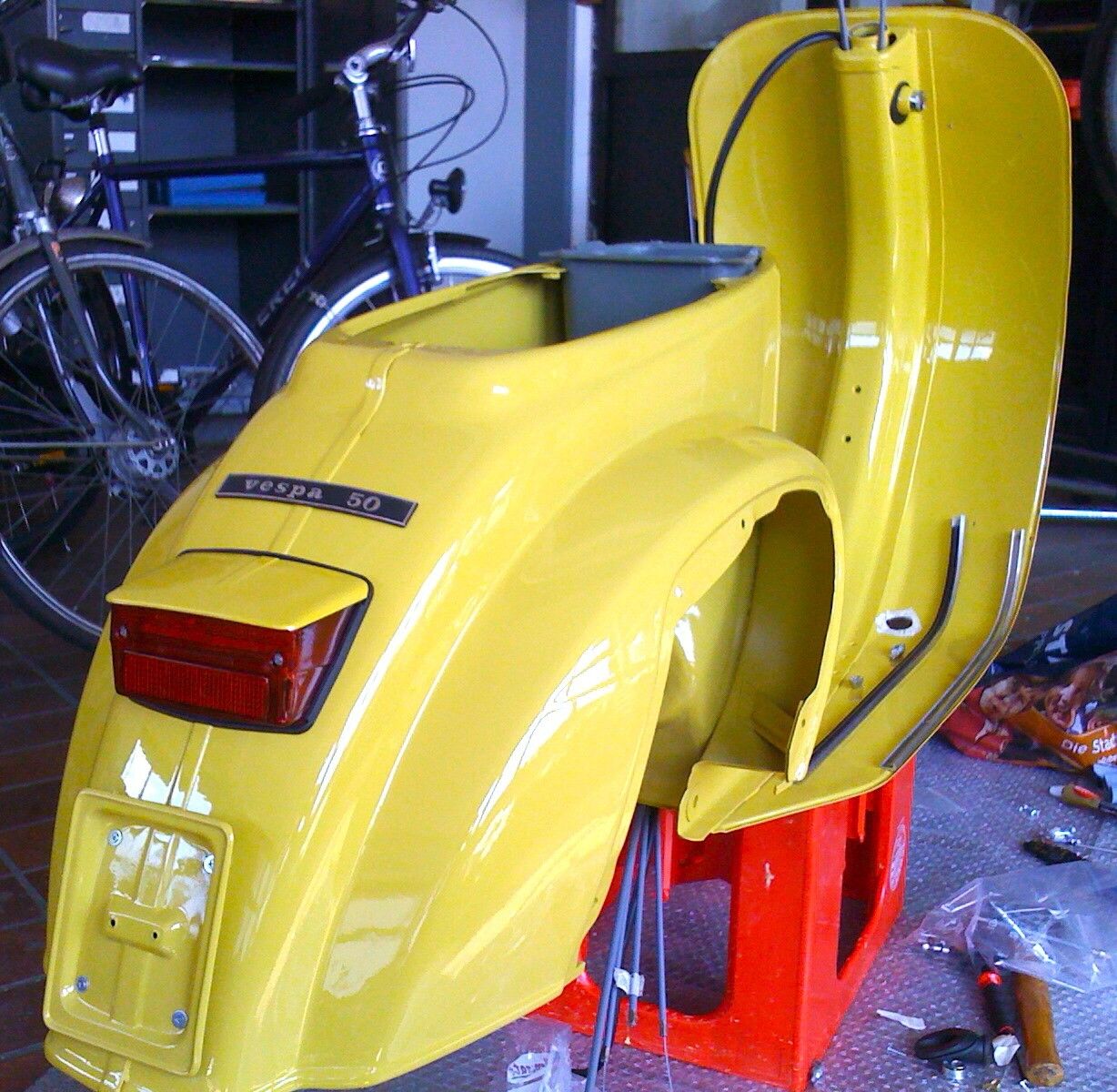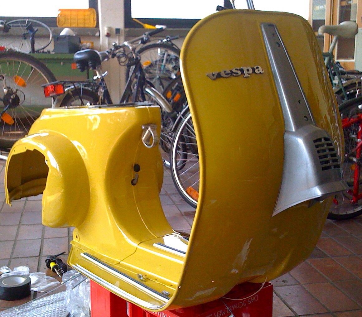 2. Bördeln: Ich bördele mir den Kantenschutz selbst dran, alles andere kostet min. genausoviel und frisst Zeit (wegfahren usw.), der hiesige Vespa-Mann hat so etwas in 40 Jahren nicht einmal gemacht...wünscht mir Glück!