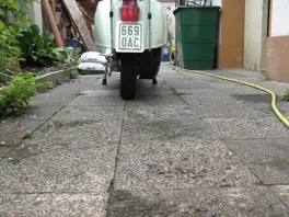 P.S. Der Hinterreifen fährt sich normal ab da die Vespa während der Fahrt die Neigung ausgleicht.
