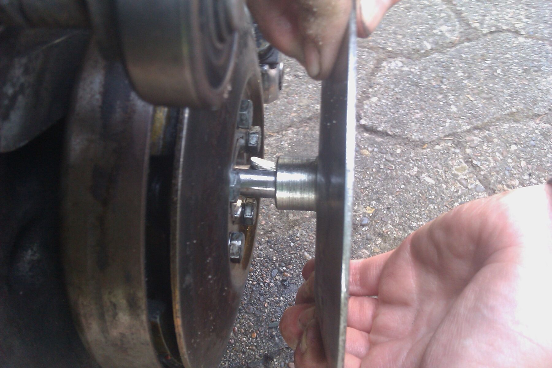 Ich habe die Mutter gelöst (wie auf dem Bild erkennbar), nun komme ich nicht weiter. Ich kann die äußere Scheibe nach vorne ziehen und so auch den Keilriemen abnehmen, irgendwann ist aber Schluss und es geht nicht weiter. Wie bekomme ich die äußere Scheibe ab? Eine Antwort würde mich schon sehr weiterbringen.