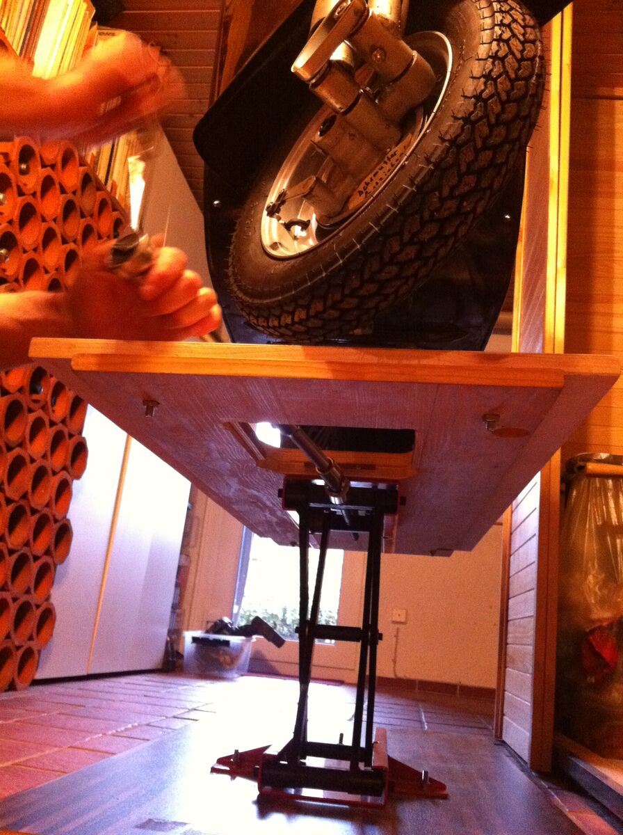 Zwischenzeitlich hatte mein Papa mir „mal eben“ eine Hebebühne gebaut, das war und ist natürlich ein Highlight nicht mehr auf dem kalten Boden rumkriechen zu müssen!