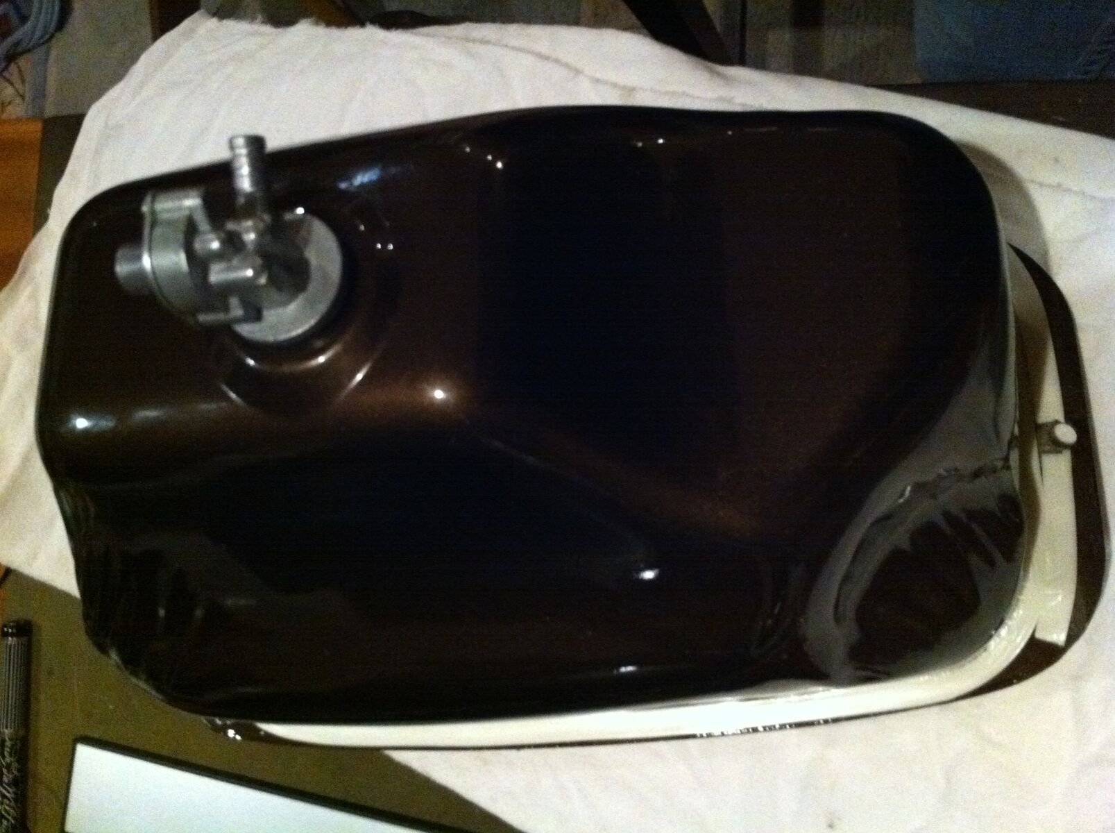 Nach selbstgebauter Tankdichtung (ja ich weiß, das ist pingelig), kamen also Tank und Sitzbank endlich drauf und irgendwie sieht die Kleine ja langsam wie ein richtiger Roller aus