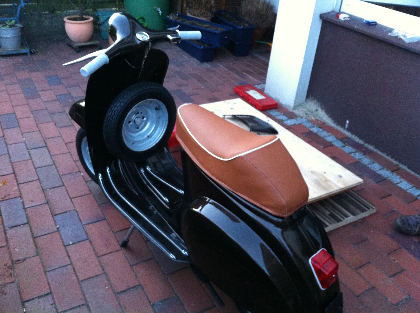 Schicker Roller, ich mag zwar nicht so gerne braune Sitzbänke, aber 1. muß sie mir auch nicht gefallen und 2. paßt sie ja gut zum Roller....