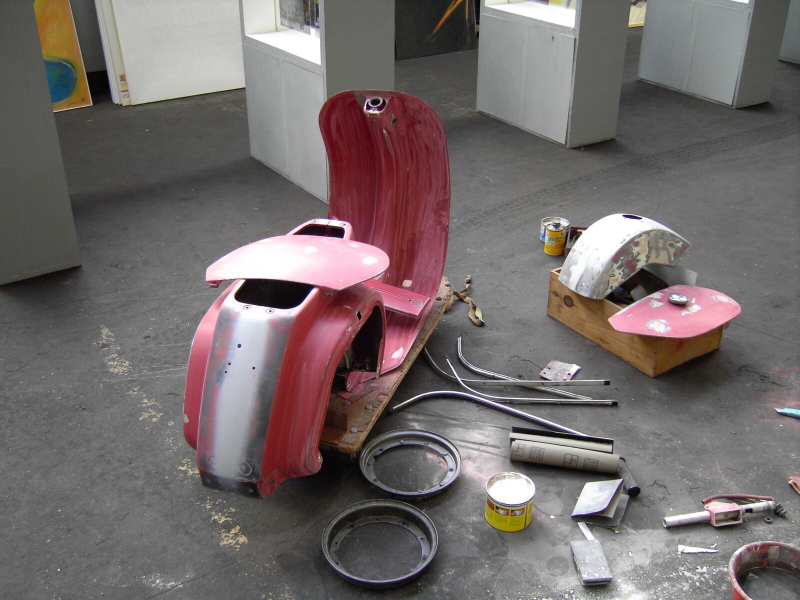Habe die letzten 2 Wochen damit verbracht sie zu säubern, schleifen und zu spachteln. Nähte gecleant und ein paar Dellen raus gehauen.