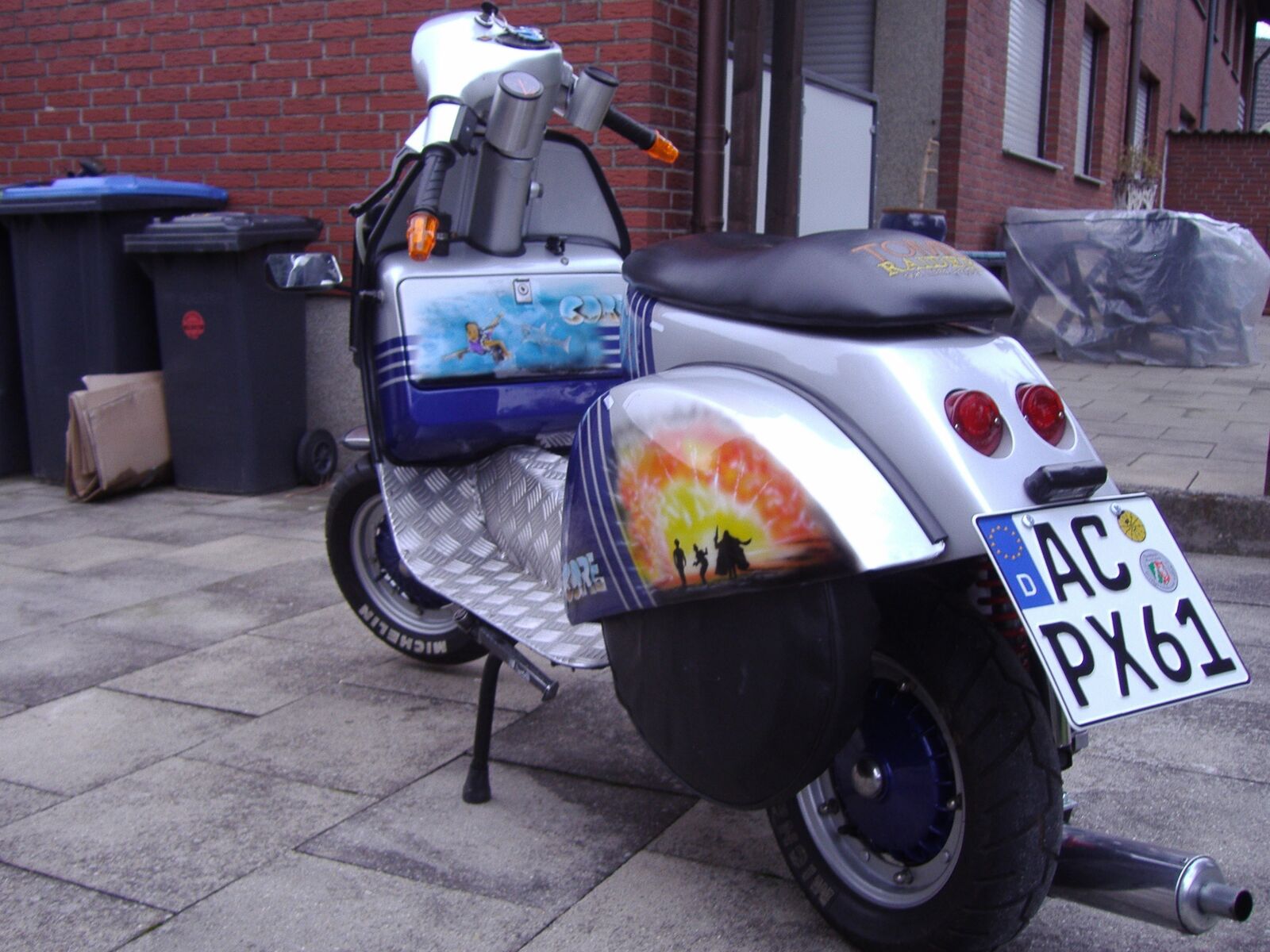 Der Roller hat TÜV 1,5 Jahre.Alle umbauten sind eingetragen.