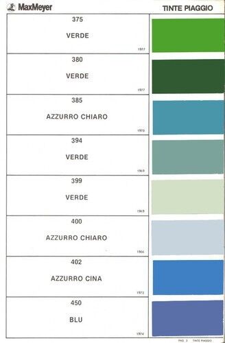 Die Farbkarten nützen in dem Falle nichts, weil die gezeigten Farben in den 60er/70er Jahren verwendet wurden. Das türkis-metallic auf der PX ist aber aus den frühen 90er Jahren. Ich meine, dass die Piaggio-Farbnummer dazu 646 ist, kann ich aber erst heute abend in einem alten Katalog nachsehen.