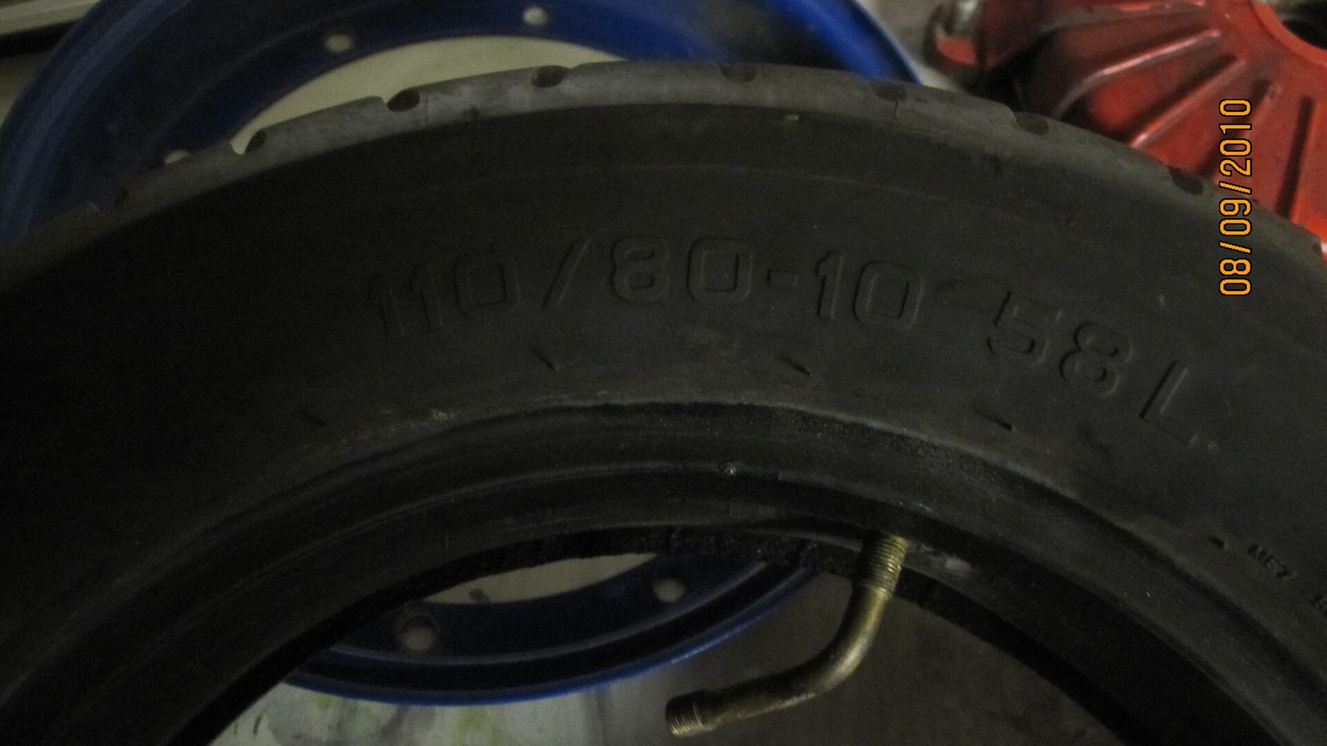 Irgendwie sind meine Reifen zu Fett, Breit und Groß, auf alle Fälle wollte ich dann das untere Halteblech für den Auspuff am Rahmen festmachen (da wo ja schon das Loch mit Gewinde vorgesehen ist) und bin da vor lauter Reifen einfach nicht mehr drangekommen, der Reifen steht ungefähr 1,5 cm vom Rahmen weg, da geht kein weg dran vorbei den Auspuff da irgendwie zu befestigen. Der Krümmer ging oben ebenso am Reifen an und wenn ich die Banane einfach mal mit dem Krümmer verschraubt hab, stand der Topf auch noch so fest am Reifen an, dass der direkt blockierte. ( Ich bin mir momentan nicht ganz sicher aber ich glaub die Bezeichnung auf meinem Reifen ist 110-80/10)