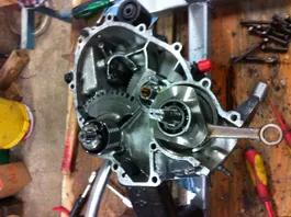 immer weiter rein geklopft, bis die Gehäuse fast zusammen waren, bei der Kurbelwelle war aber noch