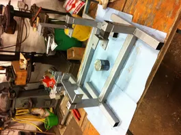 Die Kurbelwelle selbst zu richten, halte ich mit Hausmitteln für unmöglich. Da geht es um wenige hundertstel Millimeter. Zuerst wird mit so einer Vorrichtung der Rundlauf geprüft. Das angeschlossene Mikrometer zeigt durch Ausschlag des Zeigers an, wo der "Schlag" der Welle sitzt, damit man weiß, wo und wie gerichtet werden muss.