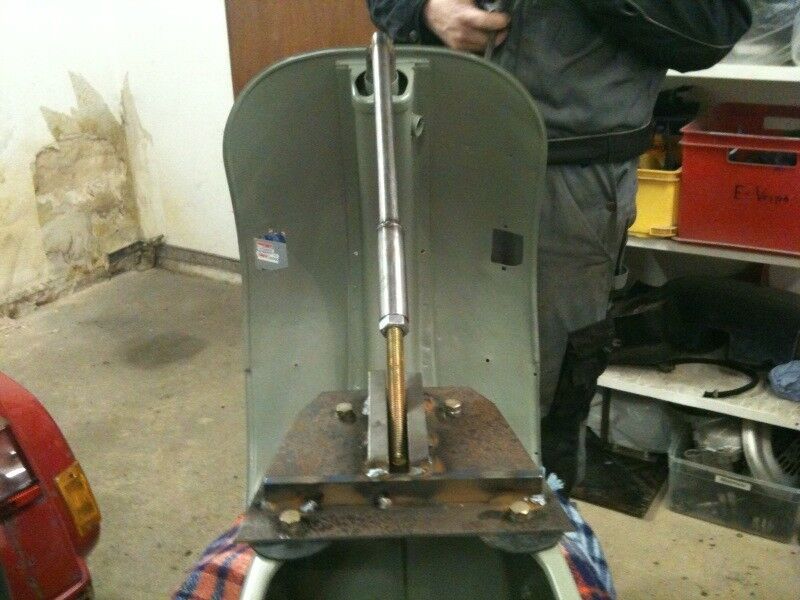 jemand trug mir die idee zu, den rahmen an den boden zu dübeln und eine eisenstange in das lenkrohr zu stecken und dann ordentlich reissen.