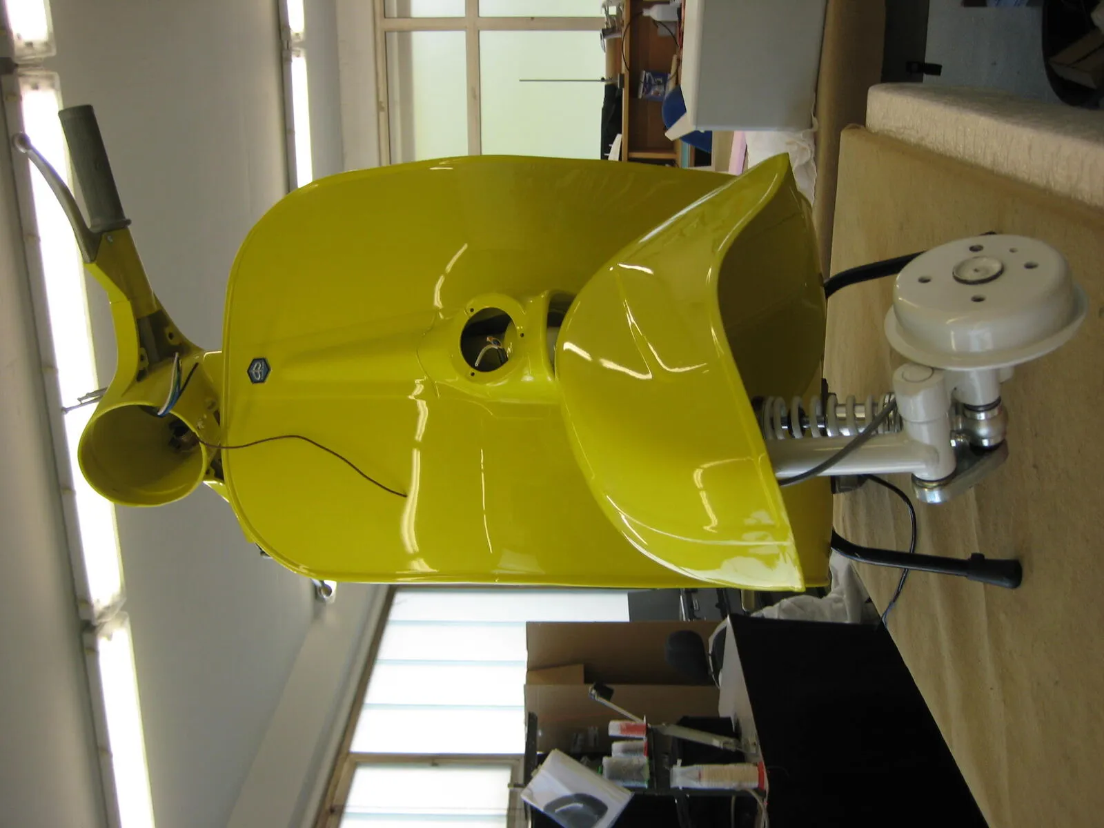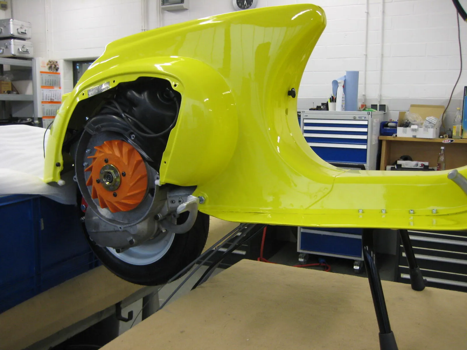 Heute gings auch schon bisschen weiter: Vespa steht schon auf ihrem Hauptständer. ![]()