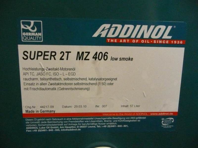 Hab`s dann auch ausprobiert und muß sagen, daß er Recht hat. Hab das Gefühl, das sie damit ruhiger und gleichmäßiger läuft, als mit dem Öl von den "Jungs aus Landsberg" oder das von der Kultfirma in den grünen Flaschen mit dem großen "C" drauf. Außerdem weiß ich aus ziemlich sicherer Quelle, daß sich hinter der Hausmarke von H.G. Motul versteckt. Nette Begleiterscheinung ist der Preis. Die Buddel (1Ltr.) kostet 8,99€. Für ein gutes Öl nicht zu teuer, "C" ist fast doppelt so teuer.