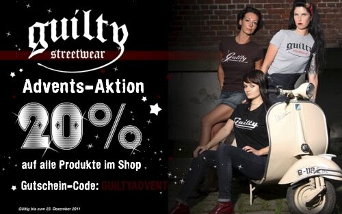 Achtung Scooterist-Sonderpreise: Nachdem ihr Euch im Shop angemeldet habt (bevor Ihr bestellt) eine kurze Mail an mich an info@guilty.de dann schalte ich Euch als Vespa-Online-User frei