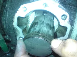 Zylinder habe ich auch abgeschraubt, und der ist in gutem Zustand, nur hat der Kolben mal geklemmt (siehe Bilder).