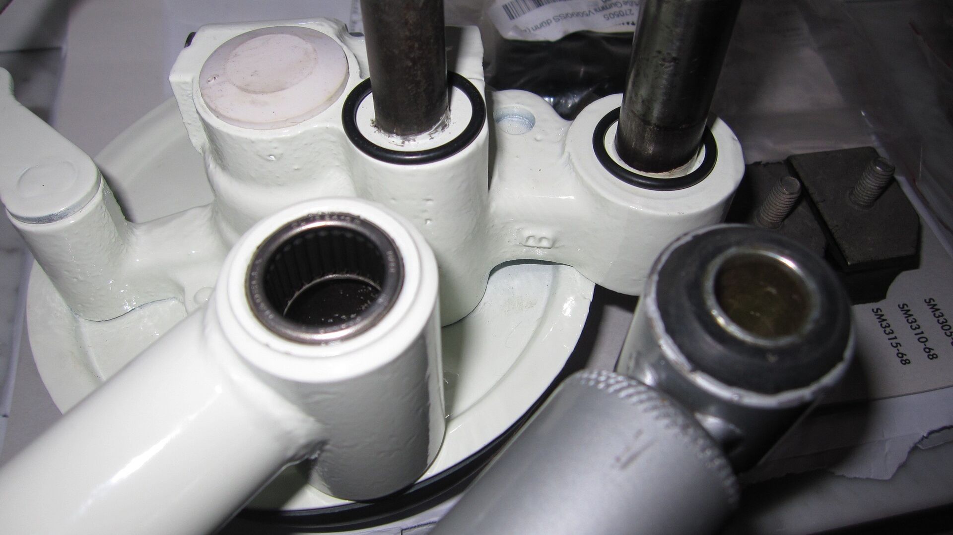• Kann sein das bei der Erstserie anders war aber bei der V50 müssen die lager weiter rein und dann kommt da so ein V-Ring rein kein O-Ring! Außen muss ein O-Ring rum!