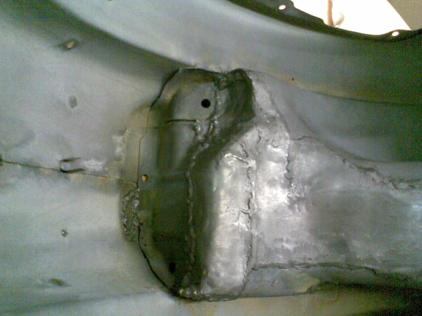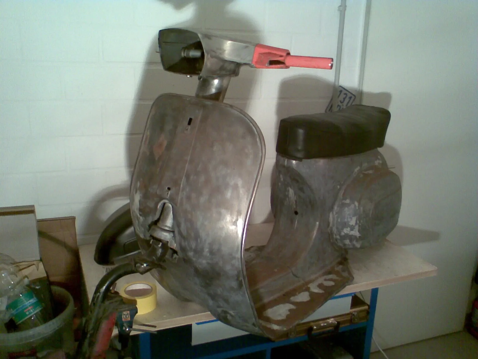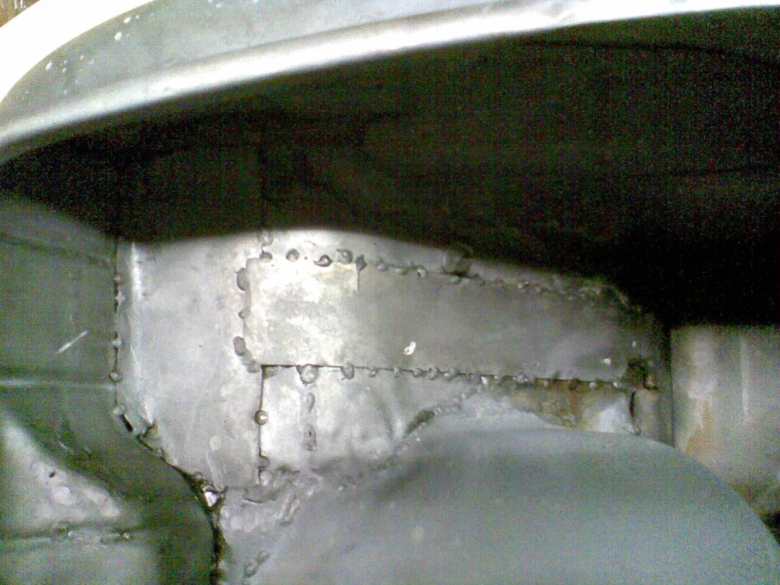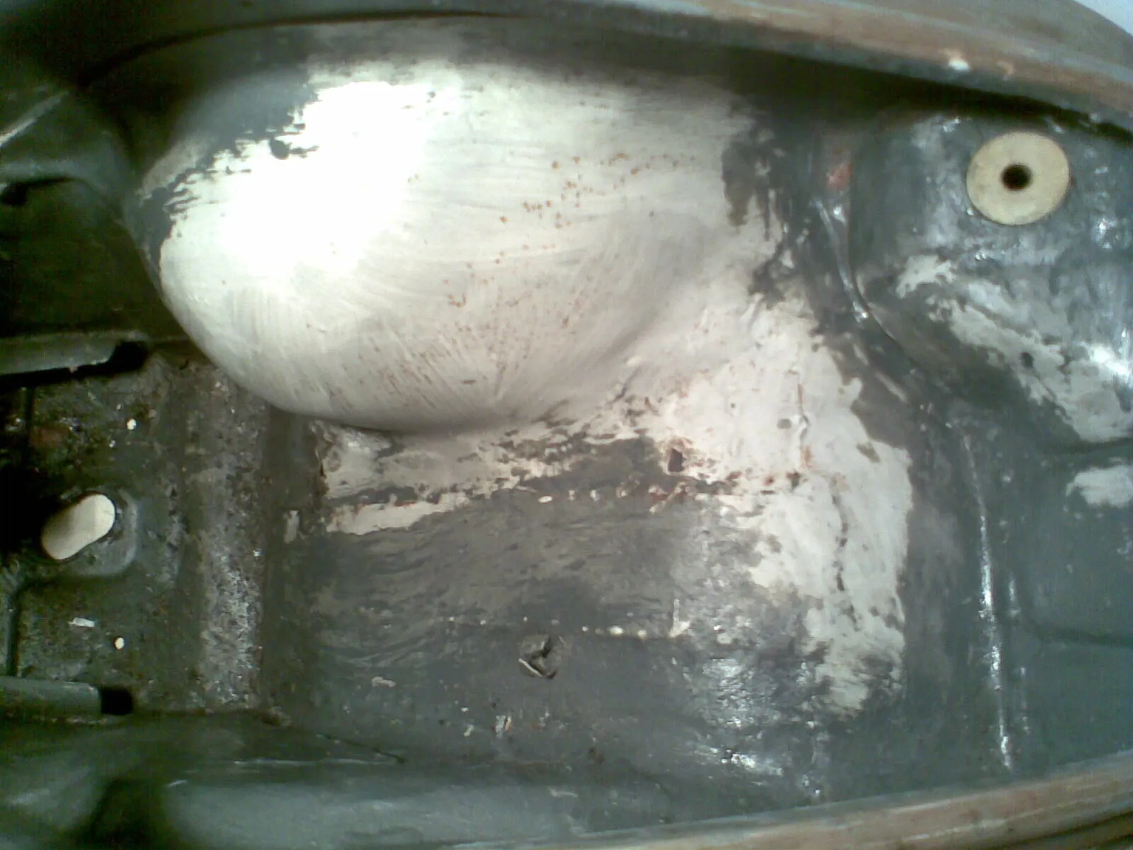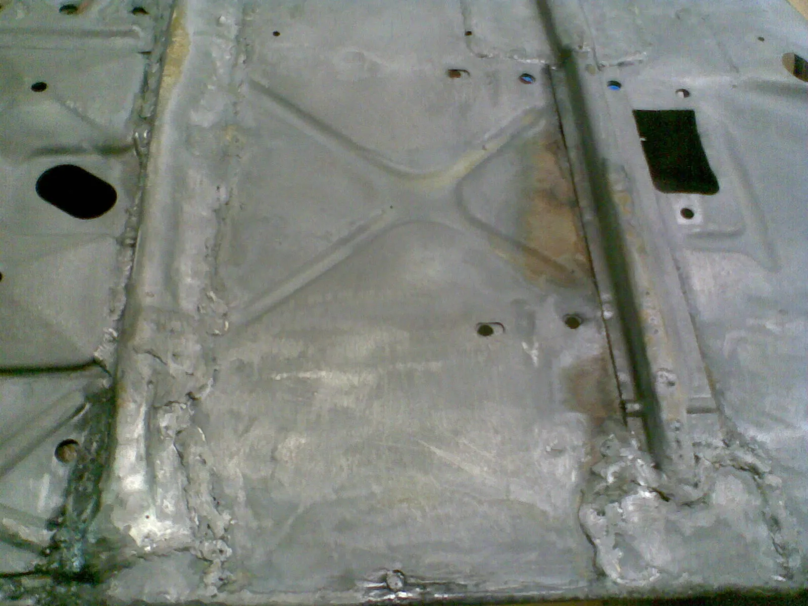• Wie wär es mit Trittblech Runter dann strahlen dann Blech wieder hin! da machst du im Schlimmsten Fall Zeit Kaputt. Allerdings würde ich auch erst mal alles anschauen das sieht schon sehr nach Flickwerk aus! Auch im Vergaserraum und an der Dämpferaufnahme!