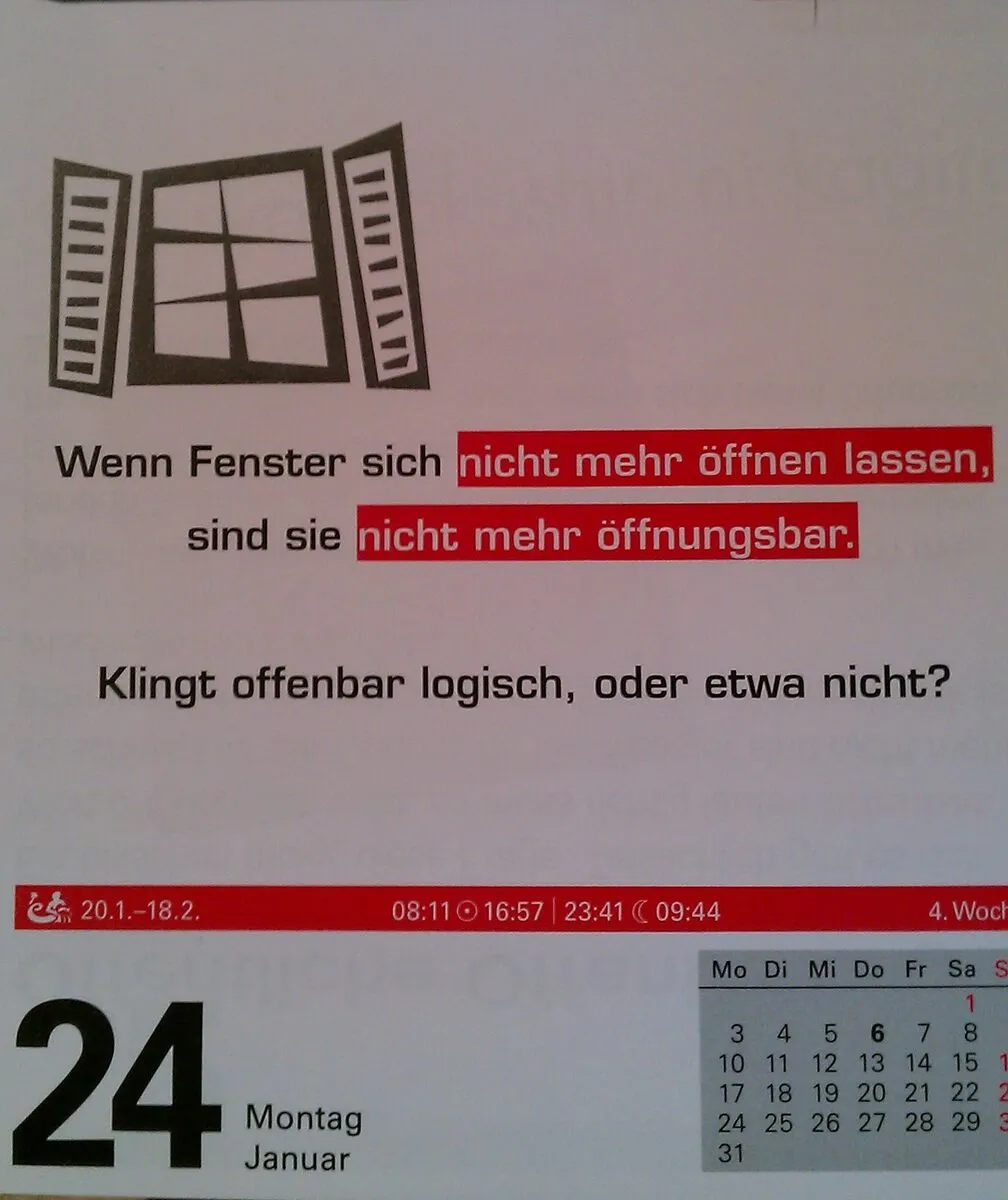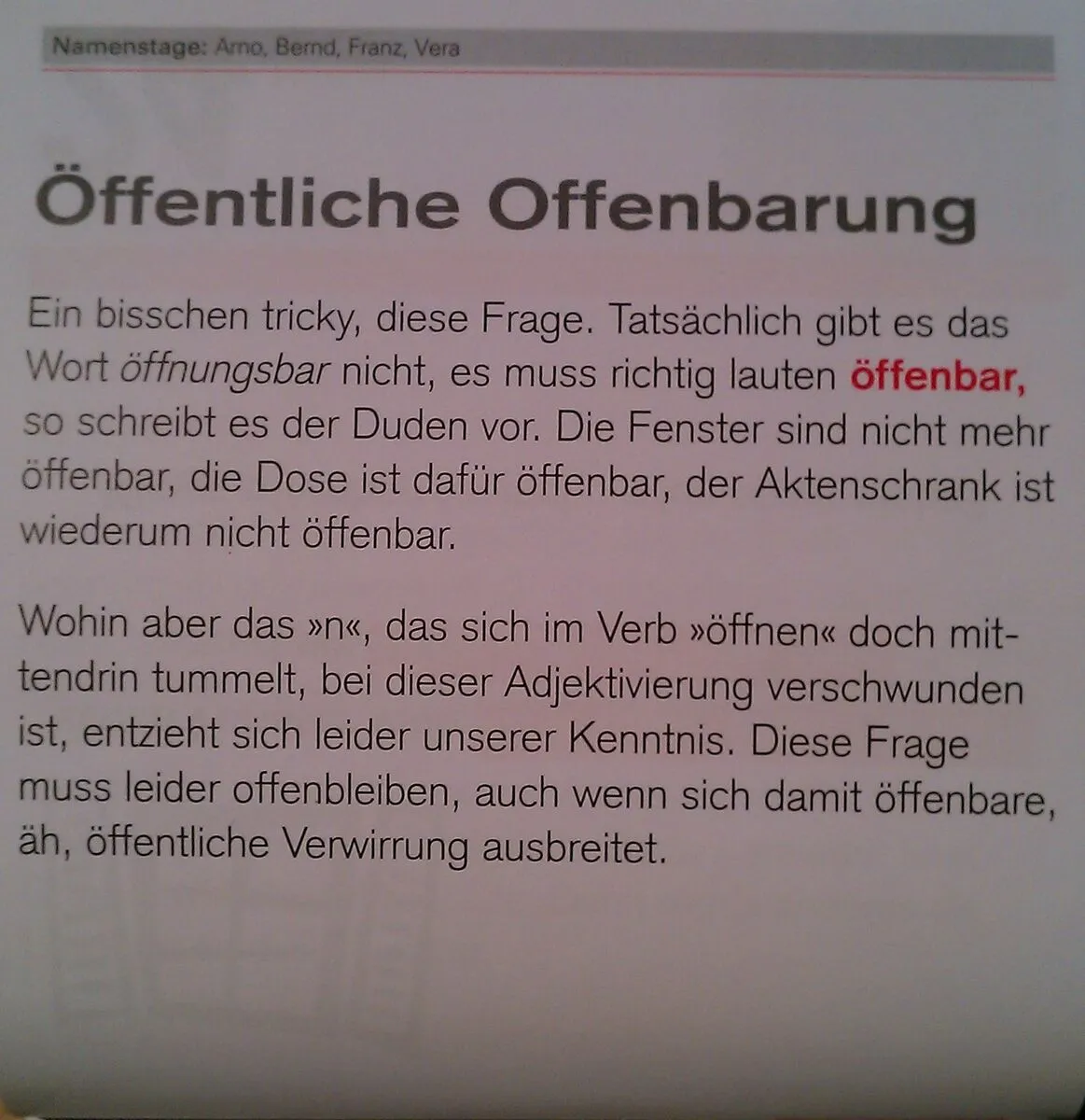 ..oder "offensichtlich war das fenster offenbar nicht öffenbar..." :-5