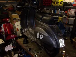 So seit gestern abend bin ich Besitzer einer 1.Serie von 1964 V5X1T 19... mit Italo Papieren. Es gibt leider auch ein paar sachen die nicht mehr so sind wie Sie mal war. Gabel mit 10" Bereifung, Motor ist auch jünger und 10" bereifung, und noch so ein paar kleigkeiten ,bei der10" Bereifung bin ich halt noch am überlegen ob ich es so lasse oder wieder auf 9" zurückbaue mal schauen bis da hin wird es noch ein weilchen dauern.