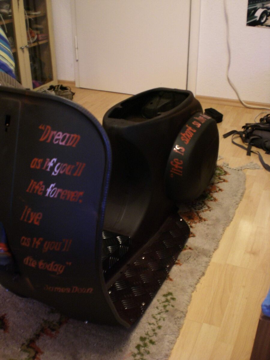 Wir ihr hier seht, wurde die Vespa vom Vorbesitzer nicht gut lackiert, ebenfalls gefällt mir die Farbe überhautp nicht da der Lackt extreme Elefantenhaut hat!