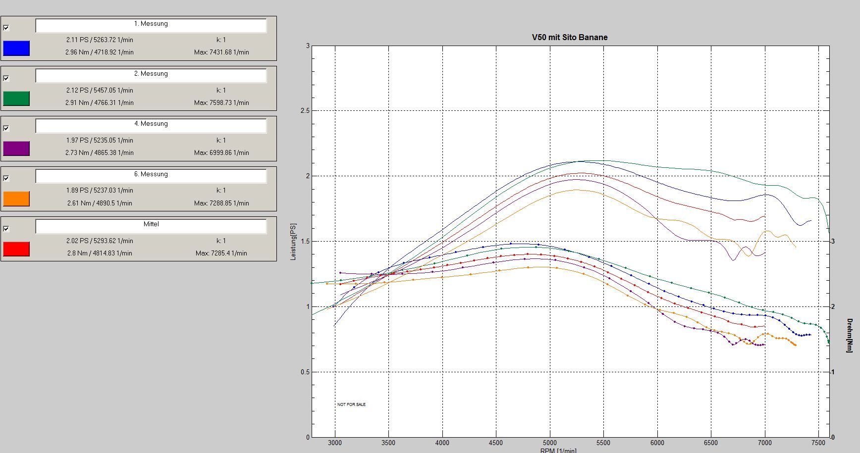 Zur Belustigung noch folgendes GSF Dyno Diagramm der Hinterradleistung einer 50 Special mit Banane