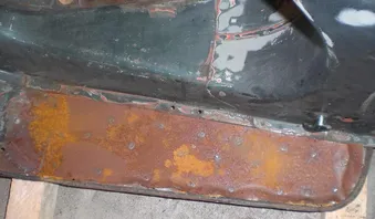 Zuerst steht natürlich die Karosse an.Es wurden abscheuliche Bleche auf die Trittbretter gepunktet, die kommen runter. Es sind kleine Durchrostungen vorhanden,denke das kann man rausschneiden und kleine Reperaturbleche nehmen.Dann in Brauweiler strahlen lassen und ab zum Lacker.Bei der Farbe bin ich unschlüßig,da muss ich noch ein bißchen nachdenken.Schwarz finde ich zwar schön,aber äußerst langweilig und unauffällig.Orange ist nicht schlecht,aber mit welcher Farbe setzt man dann Akzente.Vielleicht auch ein schönes blau...wer weiß,ist ja noch was hin.